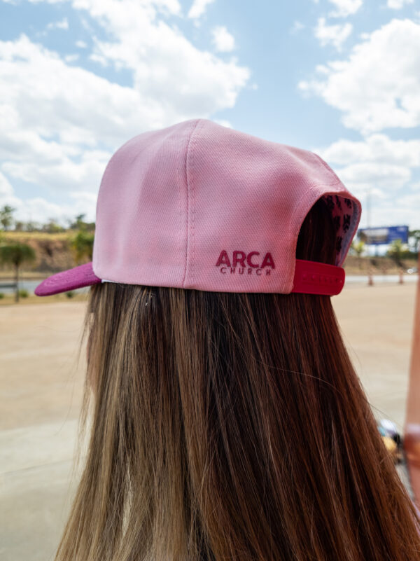 Boné com aplicação emborrachada, bordado e com aba em brilho, forrado internamente.